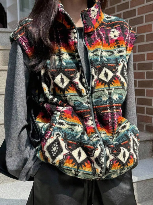 Geometric Button Up Long Sleeve Sherpa Jacket