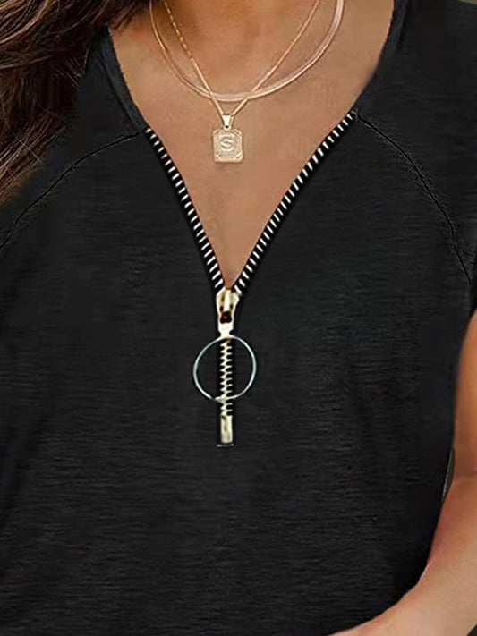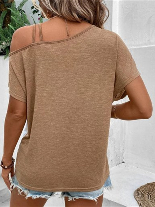 Contrast Asymmetrical Neck Short Sleeve T-Shirt