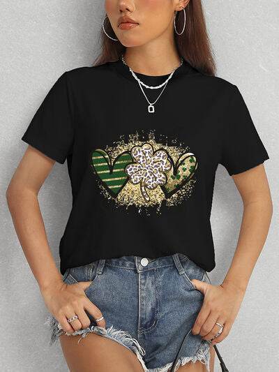 Lucky Clover Round Neck Short Sleeve T-Shirt